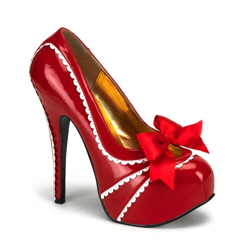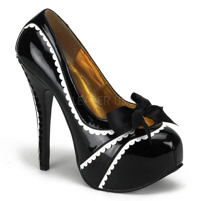 5 3/4″ Heel, Patent Upper with White Scalloped Trim & Matching Satin Bow Pump and a 1 3/4″ Concealed Platform.(TEEZE-14)