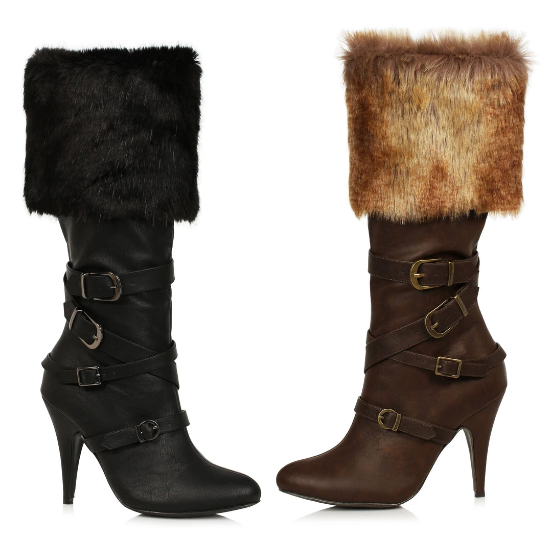 You’ll look stunning in this 4″ Heel Women’s Warrior Boot it faux fur top and buckle detailing (ES418-GRETA)