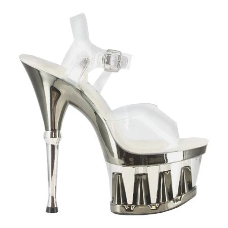 6″ Cone style Heel Sandal Featuring Shark Teeth Spikes and a 2″ Platform(ES629-CLARITY)