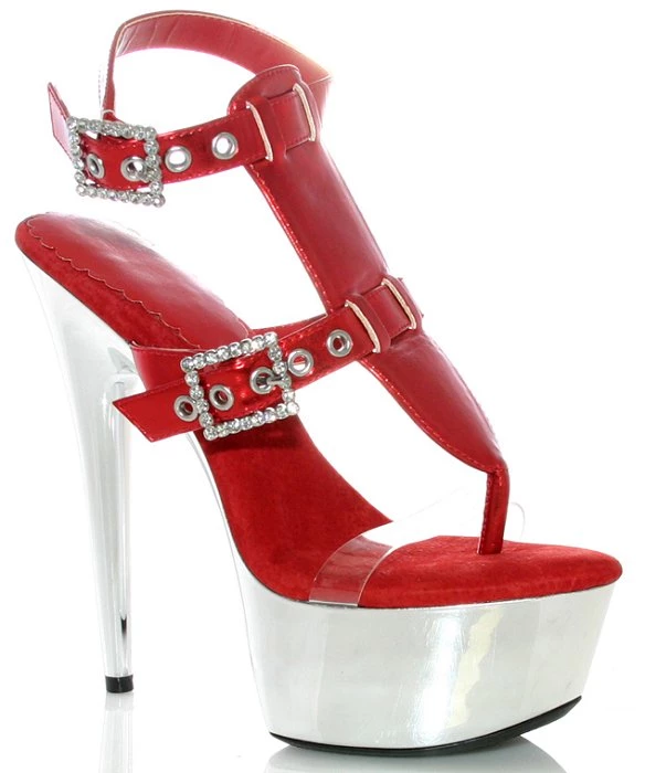 6″ Heel Pointed Stiletto Thong Platform Sandal with two adjustable rhinestone adorned buckles (ES609-Geneva)