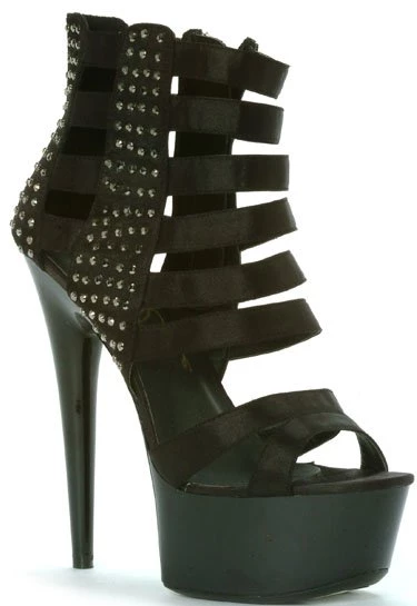 6″ Satin Strappy Stiletto With Studs and a 2″ Platform (ES609-NOIR)