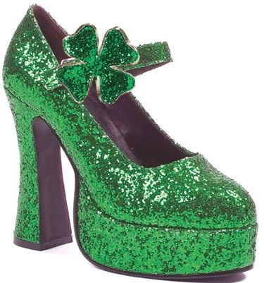 5″ Chunky Heel Green Glitter Maryjane with a 1.25″ platform.(ES557-LUCKY-Final Sale)
