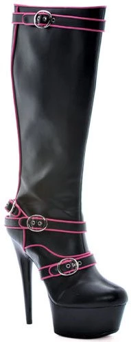 6″ Heel Knee Boots with hot pink contrasting trim and buckle strap embellishments (ES601-Fame)