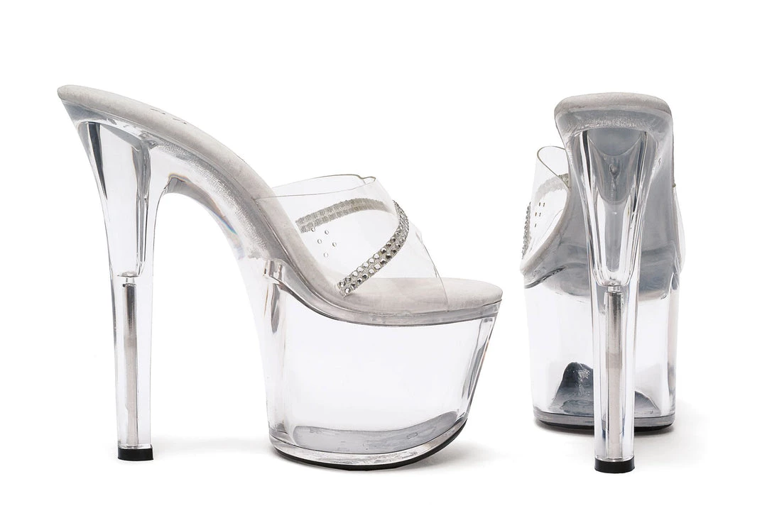 7″ Stiletto Heel Clear Rhinestone Mule with a 3″ platform (ES711-Jesse)