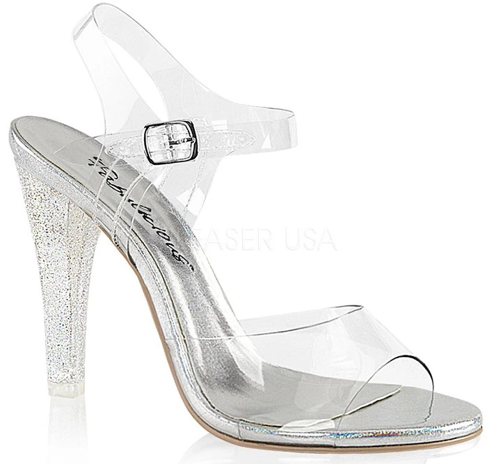 4 1/2″ (11.5cm) Heel Ankle Strap Sandal Featuring Mini Iridescent Glitters on Heel (CLEARLY-408MG Final Sale)