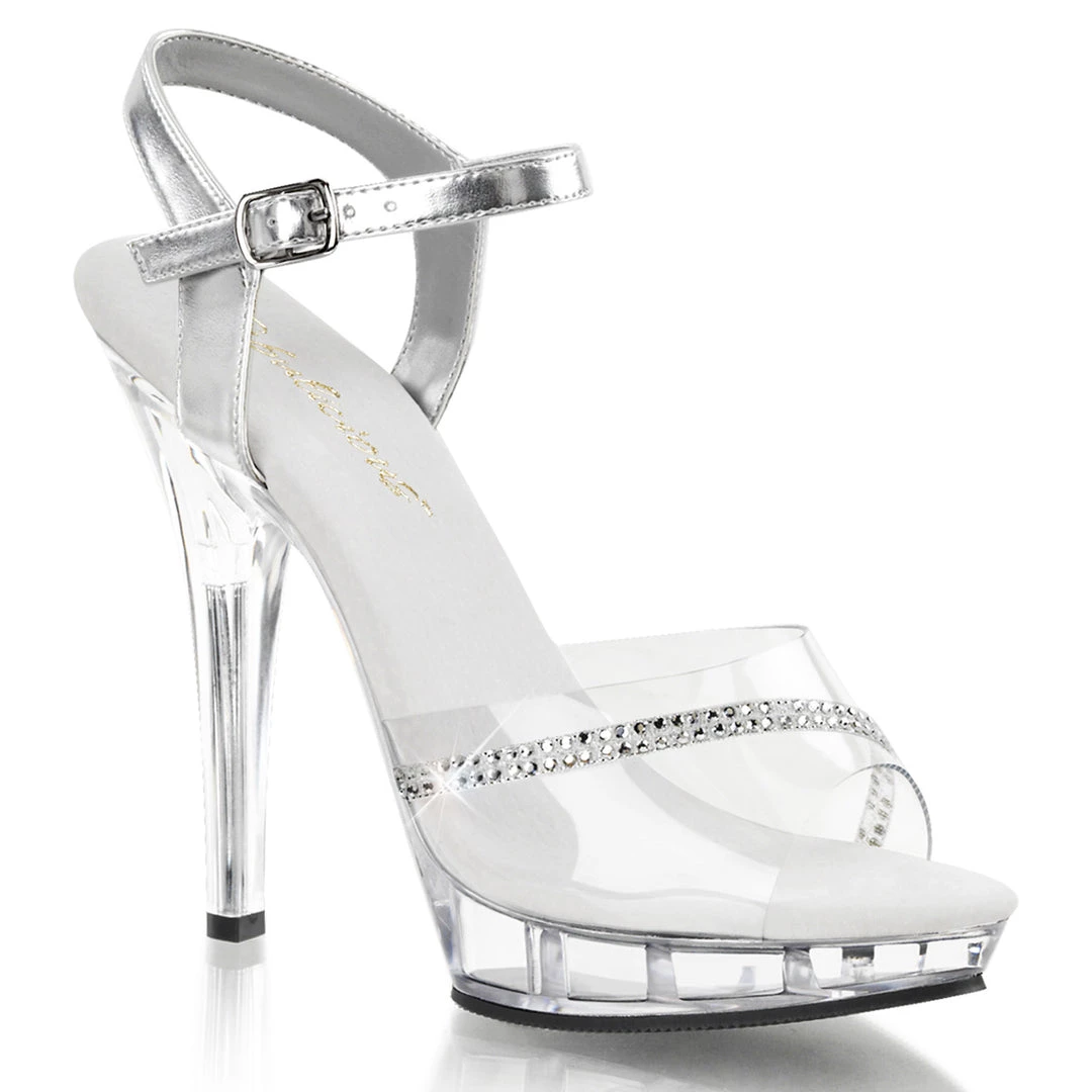 5″ Heel, 3/4″ Platform Ankle Strap Sandal Featuring Rhinestone Embellishment Across Vamp (LIP-108R Final Sale)