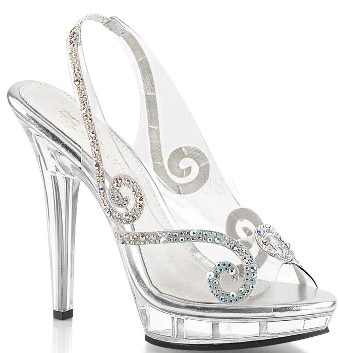 5″ (12.7cm) Heel, Sling Back Sandal Embellished With AB Rhinestones with a 3/4″ (1.9cm) Platform (LIP-149)