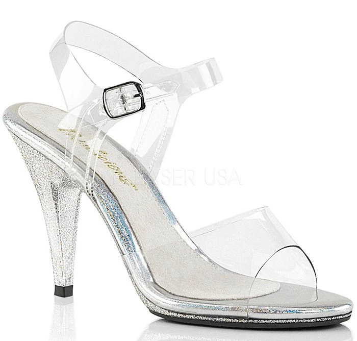 4″ (10cm) Heel, 1/8″ (0.3cm) Platform Ankle Strap Sandal Featuring Mini Iridescent Glitters on Entire Bottom (CARESS-408MG Final Sale)