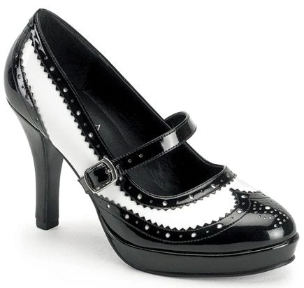 4″ Heel Black & White Patent Gangster Mary Jane Shoe with (CONTESSA-06)