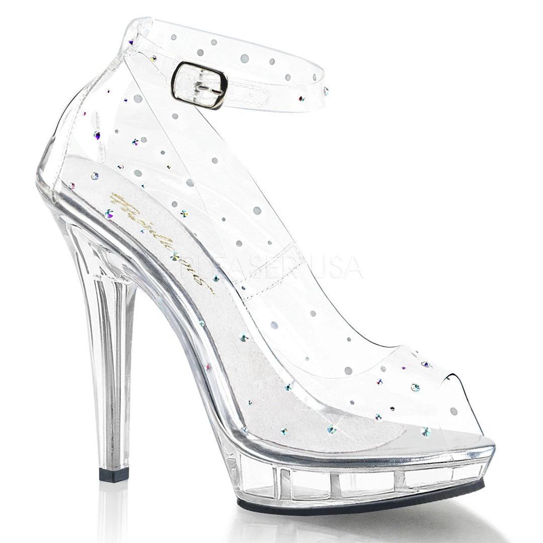 Pleaser Shoes 5″ Clear Rhinestone Peep-Toe Pump (LIP-183)