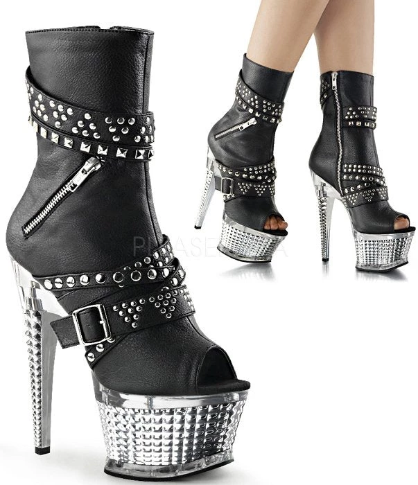 6 1/2″ (16.75cm) Heel, Peep Toe Ankle Boot Featuring Zip Pocket, Metal Stud Detailing, Textured Heel & Platform and Inside Zip Closure with a 2 1/2″ Platform(ILLUSION-1015)