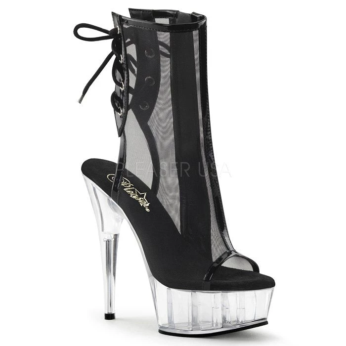 6″ Heel, Open Toe / Heel Back Lace- Up Mesh Ankle Boot, Inside Zipper Closure with a 1 3/4″ Platform.