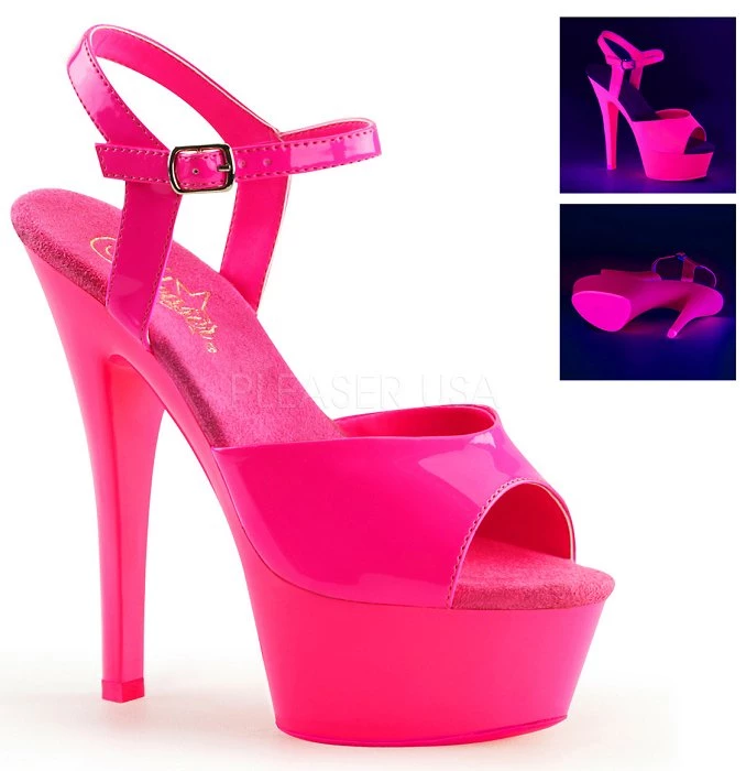 | 6″ (15.2cm) Heel, 1 3/4″ (4.5cm) Platform Ankle Strap Sandal Featuring Entire Upper, Platform and Outsole /Toplift Neon UV Reactive (KISS-209UV) |