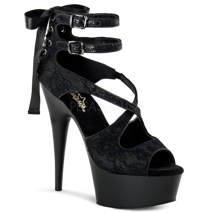 6″ (15.2cm) Stiletto Heel, 1 3/4″ (4.5cm) Platform Criss Cross Double Ankle Strap Sandal Featuring Corset Lacing at the Back (DELIGHT-678LC)