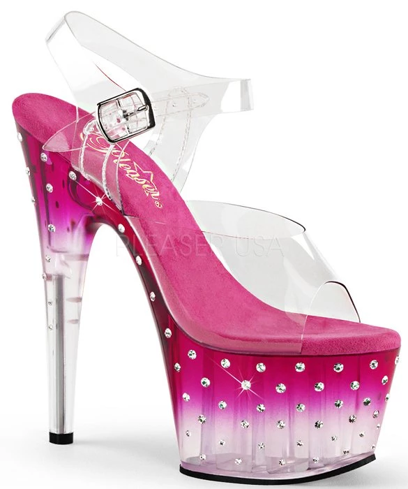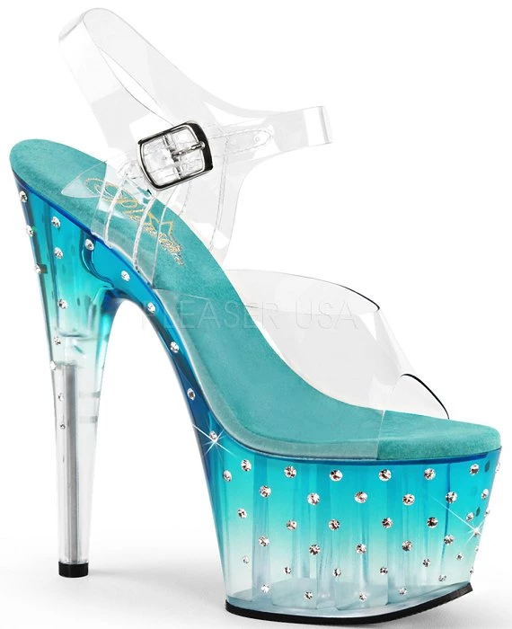 7″ Ankle Strap Sandal Featuring Multi-size Rhinestones Studded on the Outer Side of the Tinted with a 2 3/4″(7cm) Platform Bottom (STARDUST-708T)