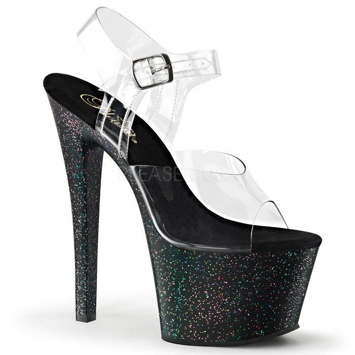 7″ (17.8cm) Heel, 2 3/4″ (7cm) Platform Ankle Strap Sandal Featuring Mini Iridescent Glitter on the Entire Platform (SKY-308MG)
