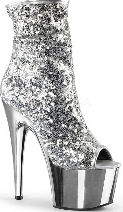 Pleaser Shoes 7″ Heel Sequins Open Toe Ankle Boot (ADORE-1008SQ)