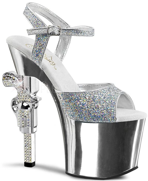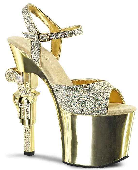 7″ Rhinestone Embellished Gun Heel and a 3 1/4″ Platform Sandal (REVOLVER-709G)