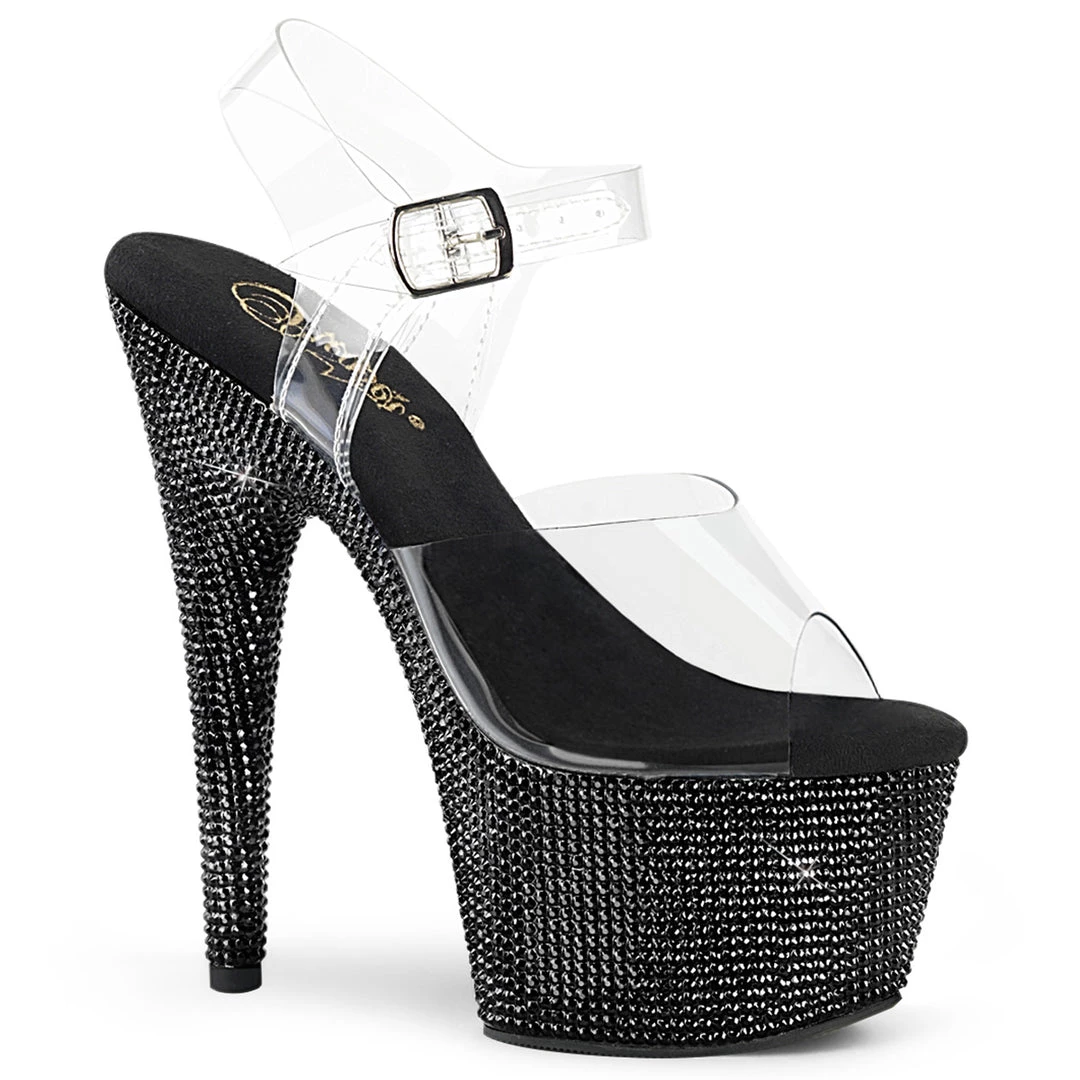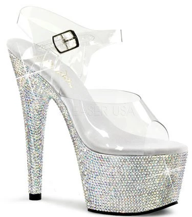7″ Ankle Strap Sandal Featuring Rhinestone Encrusted All Over 2 3/4″ Platform Bottom with approximately 7,500 rhinestones individually hand-laid per platform (BEJEWELED-708DM)