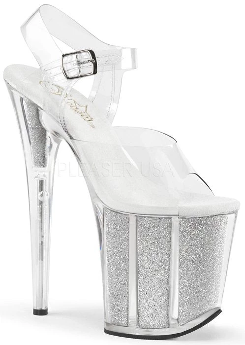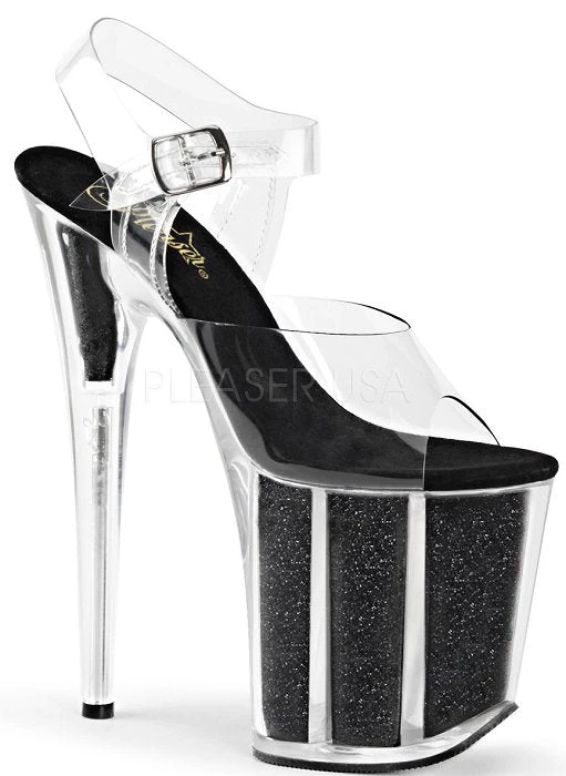 | 8″(20.25cm) Heel, Ankle Strap Sandal Featuring Glitter Filled Bottom with a 4″(10.25cm) Platform (FLAMINGO-808G) |