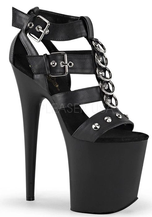 8″(20.25cm) Heel, Strappy T-Strap Closed Back Sandal w/Metal Rings and Studs Detail with a 4″(10.25cm) Platform (FLAMINGO-858-7)