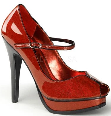 5 1/4″ Pearlized Glitter Patent Peep Toe Mary Jane Pump (PLEASURE-02 Final Sale)
