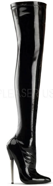 6 1/4″ (15.9cm) Solid Brass Heel Plain Stretch Thigh Boot, Full Inner Side Zipper (DAGGER-3000 Final Sale)