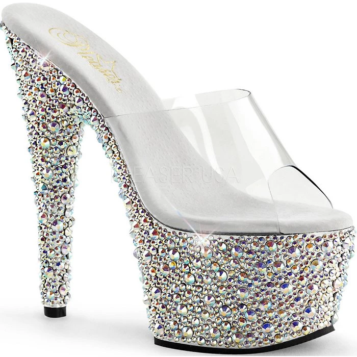 7″ (17.8cm) Heel, 2 3/4″ (7cm) Platform Slide Featuring Entire Bottom Fully Encrusted with Multi-Size Rhinestones (BEJEWELED-701MS)